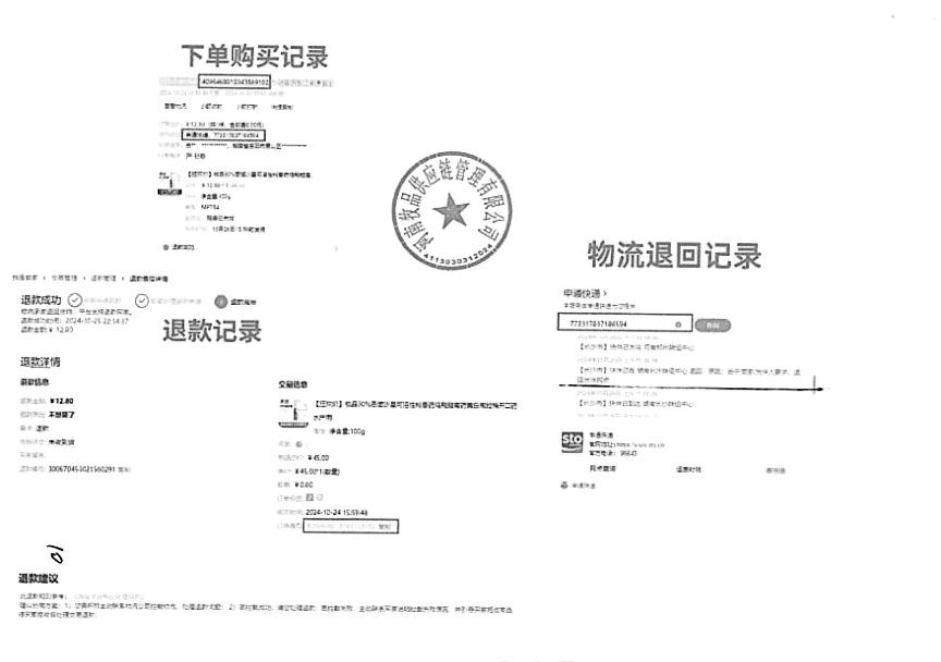 据查,2024年10月24日,用户“ydt1997517521”在淘宝网“牧品旗舰店”内与店铺客服咨询沟通并下单了1袋华畜兽用恩诺沙星可溶性粉(订单号4096468010343569102)。“牧品旗舰店”客服向该用户索要购买该处方兽药的处方笺,该用户未能提供购买该处方兽药的处方笺,由于该购物平台是拍下商品后默认发货,“牧品旗舰店”于2024年12月25日给与该客户退款,并中途拦截物流退回该商品。 经调查,淘宝店铺牧品旗舰店未发生投诉举报人所说的:“咨询及下单过程中,商家并未主动索要或开具处方,商品也能成功发出,且发货后商家未曾追踪索要处方,也未曾要求退款处理。”而且淘宝店铺牧品旗舰店,也兑现了自己在商品详情页面发布的特别声明:“不能提供身份证明或处方笺的,有权拒绝发货,默认拍下不提供的,将直接退款处理。” 商家主动已于第一时间,给与该投诉举报人退款,并拦截物流退回商品。 2. 平台:拼多多; 店铺名称:安牧渔动保用品工厂店: 企业名称:具体事由:2024年10月25日,用户“600777922234”在拼多多“安牧渔动保用品工厂店”内与店铺客服咨询沟通并下单了1袋恩诺沙星可溶性粉(订单号241025-374635240992931)。商品详情页面发布的声明表示:不能提供身份证明或处方笺的,有权拒绝发货,默认拍下不提供的,将直接退款处理。实际上,咨询及下单过程中,商家并未主动索要或开具处方,商品也能成功发出,且发货后商家未普追踪索要处方,也未曾要求退款处理。 据查,2024年10月25日,用户“600777922234”在拼多多“安牧渔动保用品工厂店”内与店铺客服咨询沟通并下单了1袋恩诺沙星可溶性粉(订单号241025-374635240992931)。“安牧渔动保用品工厂店”客服向该用户索要购买该处方兽药的处方笺,该用户未能提供购买该处方兽药的处方笺,由于该购物平台是拍下商品后默认发货,“安牧渔动保用品工厂店”于2024年12月27日给与该客户退款,并中途拦截物流退回该商品。 经调查,“安牧渔动保用品工厂店”未发生投诉举报人所说的:“咨询及下单过程中,商家并未主动索要或开具处方,商品也能成功发出,且发货后商家未曾追踪索要处方,也未曾要求退款处理。”而且“安牧渔动保用品工厂店”,也兑现了自己在商品详情页面发布的特别声明:“不能提供身份证明或处方笺的,有权拒绝发货,默认拍下不提供的,将直接退款处理。” 商家主动已于第一时间,给与该投诉举报人退款,并拦截物流退回商品。